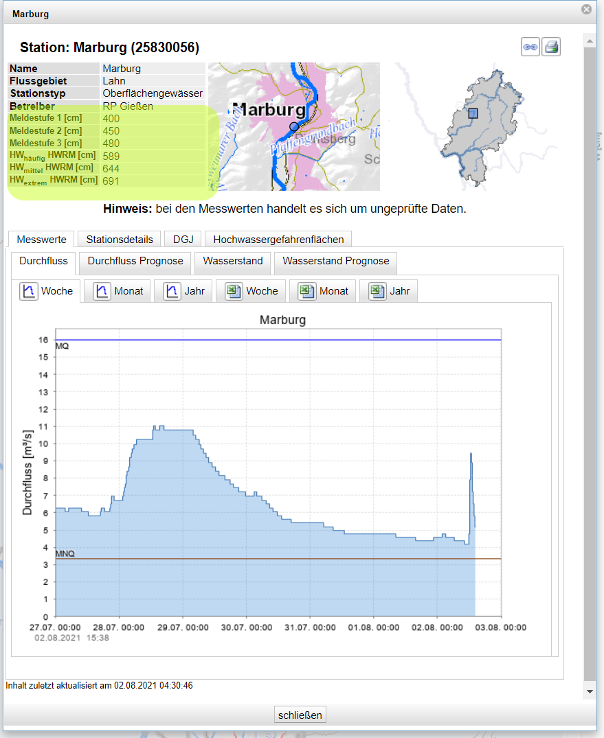 Unfortunately these levels cannot be queried automatically. Please select your federal state (opens new window) and check if which levels they provide. The picture shows the levels of measurement station Marburg of federal state Hesse (opens new window)