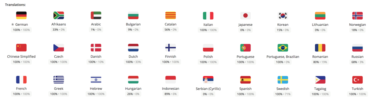 A lot of effort went into translation work during the past months: Not only the openHAB dashboard, but also HABPanel and the Android app have been translated into many languages by community members all over the world. We are using the Crowdin service (opens new window) for this, which makes it really easy for people to contribute - it is a perfect start for actively participating in the community!