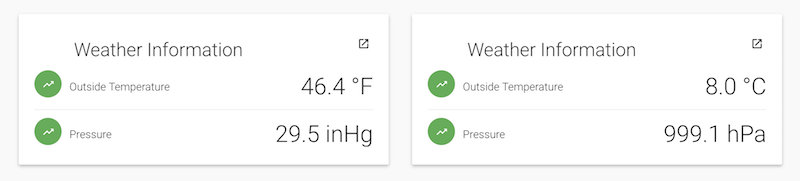 Another great feature that makes it much easier to use openHAB all over the world is the new support for units on numbers. This make it now possible to e.g. use imperial units even if your sensors deliver values in the metric system. You can thus have all your temperatures shown as °F, completely independently from the hardware you are using - the conversion is automatically done by the framework. This not only works for simple conversions like °C to °F, but also for hPa to inHg or similar things. Likewise, you can even decide to have different representations within your own measurement system. So while your sensor might deliver data in m/s, you can simply define that this is shown as km/h in your user interface.