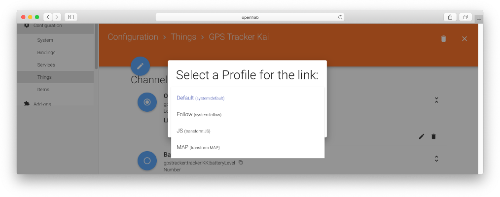 The Paper UI lists all applicable profiles when linking an Item to a Channel and only more advanced profiles require some additional configuration, which can all be done through the UI. More details and examples on how to use Profiles can be found in the documentation (opens new window).